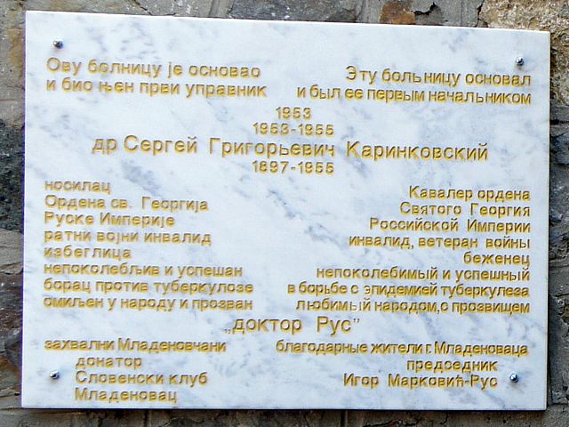 Тридесетих година прошлог века, у варошицу Младеновац стигао је на штакама др Сергеј Георгијевич Каринковскиј. Тек што је прешао тридесету своју годину, а за собом је већ имао један рат, тешко рањавање, избеглиштво, студије медицине у Загребу; већ проживљен читав један живот.