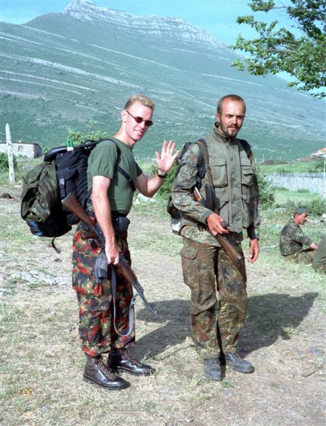 Активно се укључио у конфликт, у почетку као војни инструктор, а потом по њеним речима: „…иде у патроле, и убија Србе у ватреном окршају… при крају изгубљен и полу-луд шпијунира Српске трупе, сарађује са Специјалним америчким снагама…“