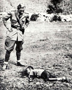 На слици се види Генерал Александрo Лузанo како стоји изнад једнoг прекланог Србског детета испред школе у Пребиловцима. фото: НОВОСТИ