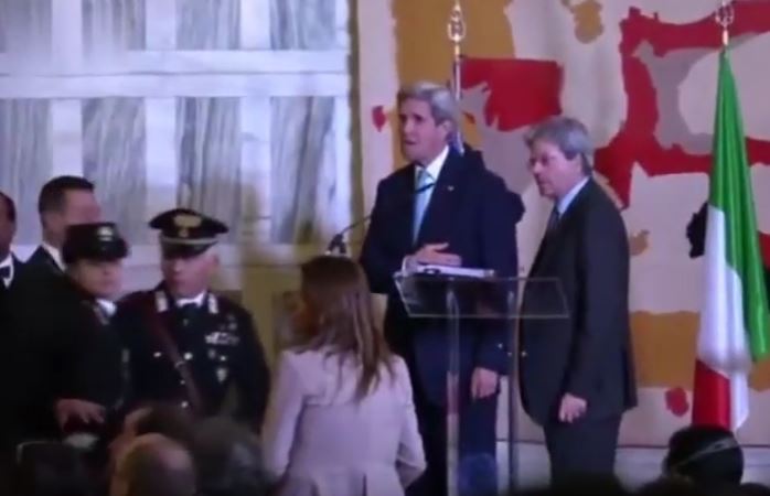 РИМ – Приликом своје јучерашње посете Италији, Џон Кери, државни секретар САД-а, доживео је велики скандал на конференцији за штампу са својим колегом Паолом Џентилонијем, шефом дипломатије Италије.