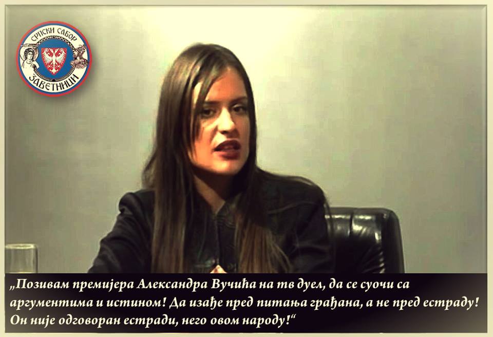Погледајте гостовање портпарола Заветника, Милице Ђурђевић у емисији “Екстреми” на ТВ Мост! ————– Милица Ђурђевић позвала Александра Вучића на тв дуел (видео) 11. 2. 2016. ЗАВЕТНИЦИ, за ФБР приредила Биљана Диковић