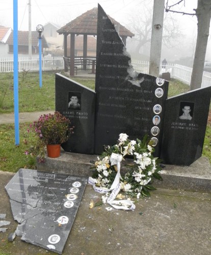 Published at 414 × 500 in Гораждевац – Обновљен споменик жртвама НАТО бомбардовања и убијеним дечацима, порушен мецима из аутоматског оружја у децембру 2015.