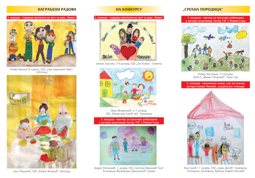 АРС АКАДЕМИЈА и лист за децу „НЕВЕН“ ће 20. фебруара 2016. године у 19 часова, у просторијама галерије „Зрно“, уручити награде за најбоље дечије радове учесницима ликовног конкурса „Срећна породица“, који су … Настави са читањем НАЈАВА: ИЗЛОЖБА дечијих радова на тему „Срећна породица“ награђених на конкурсу Арс академије и листа за децу „Невен“
