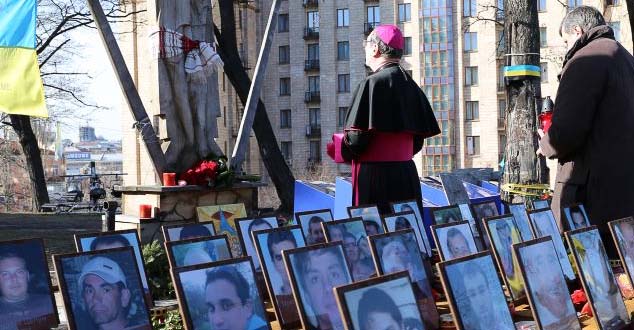 Папски нунције у Украјини је узео учешће у политичком спектаклу посвећеном другој годишњици Мајдана и одао пошту убијеним учесницима метежа против легитимне власти.