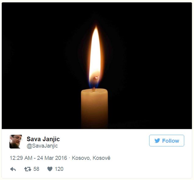 На дан када је бомбардована Србија, Сава Јањић на свом Твитер налогу, на коме га велики број људи прати, објавио је фотографију на којој је све црно осим једне упаљене свеће. Поетично… наизглед. У ствари – бездушно, безобразно, поданички и издајнички.
