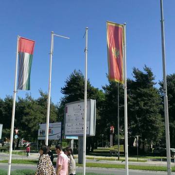 Published at 960 × 539 in ЦРНА ГОРА ПРИЗНАЛА ГА НИЈЕ: Запаљена шиптарска застава „Косова“ и застава државе Албаније (фото)