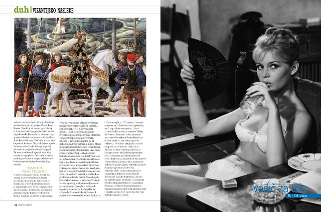 „Византијско наслеђе“, илустрација дело католичких сликара. Иза ове странице (десно) наставља се прича са фотографијама православних цркава и манастира.
