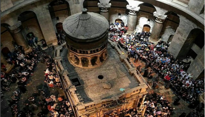 12:30 В Иерусалиме идет подготовка к Церемонии схождения Благодатного Огня. Десятки тысяч паломников приехали, чтобы принять участие в службе храма Воскресения Христова.