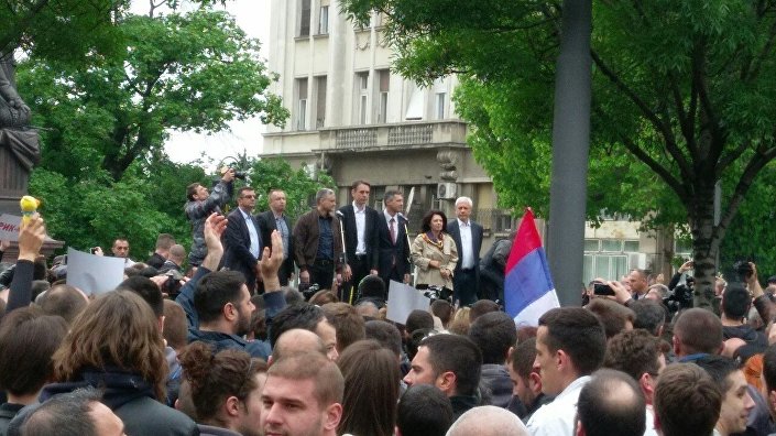 Испред зграде Републичке изборне комисије почео је протест због, како наводе лидери опозиције, изборне крађе. Вучић је од политичке сцене у Србији направио каљугу, рекла је окупљенима председница ДСС-а Санда Рашковић Ивић.