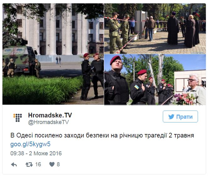 Грађани Одесе од јутра носе цвеће на трг Куликово поље, који је био центар трагичних догађаја 2. маја 2014. године.
