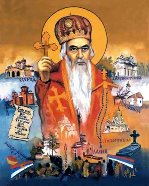 Данас Небеска Србија, данас, о не само Небеска Србија, него Православна Црква Небеска, слави Највећег Мученика у роду Српском после Светога Саве, Светог Равноапостолног Србског Николаја. Данас њега славе Серафими и Херувими, јер им је раван по благовестима које је ширио земљама, свима земљама Европе, Америке и Азије као Херувим! Њега данас сигурно грли — ко? Свети Сава грли свог Најмилијег Сина у Српскоме роду. А са њим, око њега, и многобројни Србски Светитељи са Светим Савом, Светим Симеоном Мироточивим и осталим Српским Светитељима. Данас на небу, Небеска Србија слави највећег Српског Светитеља. Данас Сви Свети, све велможе, сви Свети Немањићи на небу, поздрављају Новог Српског Мученика, Највећег Српског Новог Еванђелиста, Највећег Новог Српског Апостола—Светог владику Николаја.