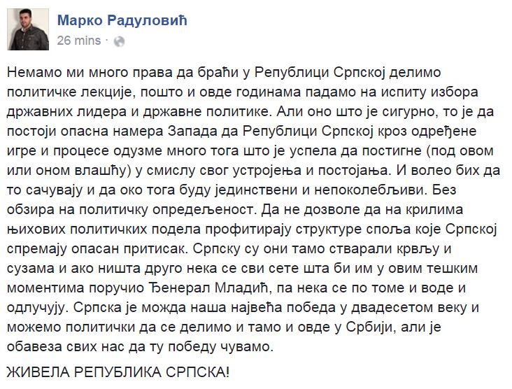 1. „Српски народ има двије државе – Србију и РС! Шта је овдје освајачки?