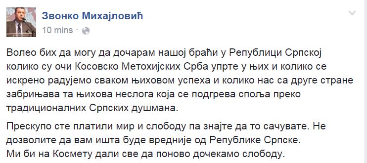 „Нека зна врховни командант криминалне организације, ускоро ће Српском владати поштени, а не криминалци“, рекао је Михајлица.
