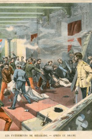 Врло битан и дискутабилан догађај. Званична верзија, да су завереници официри убили тиранина и његову подлу конкубину и нису баш тачни, али је још мање тачно мишљење настало услед лоше пропаганде завјереника о тиранима, да су завереници у ствари убили дивни краљевски пар по наређењу Русије или Запада, те тако уништили Србију, па је чак тим Мајским превратом (1903.) увели у Велики рат (1914.). Истина се може може увидјети из низа узрока и посљедица атентата.
