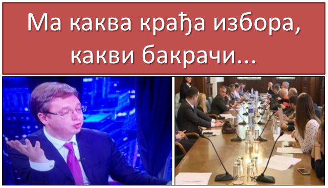 Згрожени смо недавно изреченом дегутантном изјавом мандатара Александра Вучића, који лидере опозиционих странака, забринуте за прекрајање изборне воље око милион грађана Србије, назива бандом која упада у два ноћу и малтретира председника и чланове РИК-а. Као да у РИК, државну институцију Народне скупштине, може да упада ко како и кад хоће!