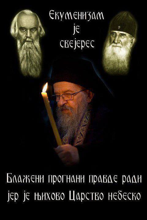 „…Папистичко-протестантски екуменизам са својом псевдоцрквом и својим псевдохришћанством нема излаза из својих смрти и мука без свесрдног покајања пред Богочовеком Господом Христом и Његовом Православном Црквом. …Без покајања и ступања у Истиниту Цркву Христову неприродно је и бесмислено говорити о неком уједињењу „цркава“, о дијалогу љубави и интерцоммунио..“