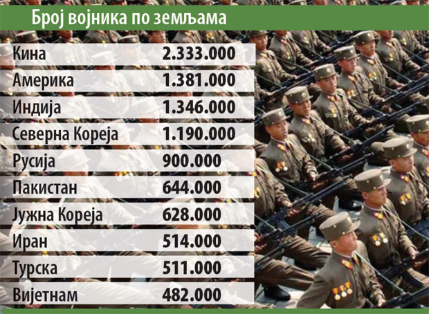На другој страни, Русија је трошила на одбрану 4,18 посто БНД, а САД 3,33, Кина али и многе друге земље су такође присиљене да повећавају своје војне расходе.