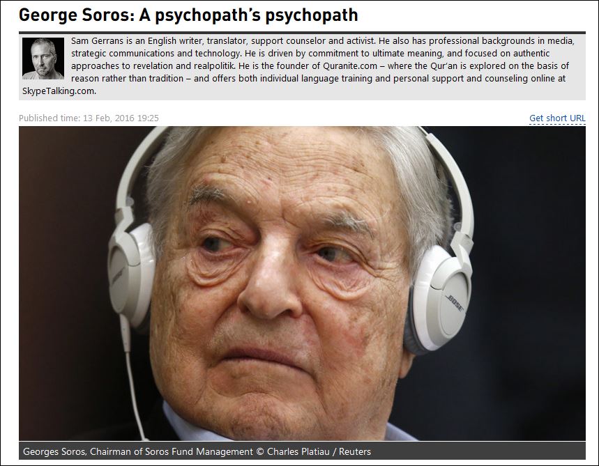 Пре пар дана Гардијан је објавио чланак Џорџа Сороша под насловом „Путин је већа претња по Европу од Исламске државе.“ Пре него што се осврнемо на неистине које чине основу Сорошовог чланка, дајмо пар речи о психопатама.