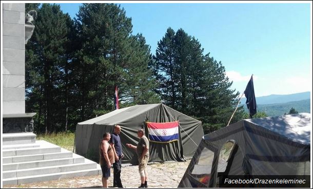 Полиција је дозволила филоусташама да саботирају антифашистичку годишњицу, десетак чланова Аутохтоне хрватске странке права су, на целу с Драженом Келеминцем, уз благослов полиције подигли шатор подно Споменика устанку народа Хрватске, а како наводе на својим званичном сајту „тамо намеравају да остану до 1. августа.