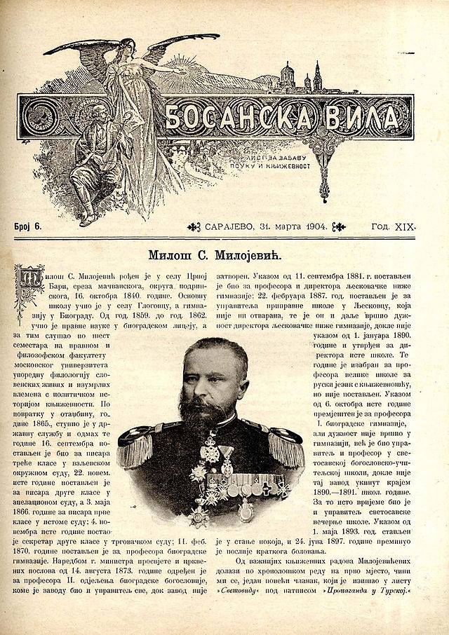Часопис “Босанска Вила“ од 31. марта 1904. године. У броју 6 је написана кратка биографија нашег историчара Милоша С.Милојевића чија се дела и дан данас не предају у основним и средњим школама, о универзитетима да и не говорим. Због чега је то тако, одговор треба да нам дају ови из САНУ!??
