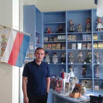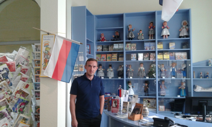 У културно-информативном центру. Лево, застава Лужичких Срба