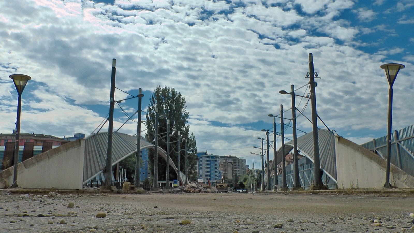 Главни мост у Косовској Митровици од лета 1999. након окупације КиМ, испресецан је ожиљцима сукоба који су се на њему, и око њега, одиграли.