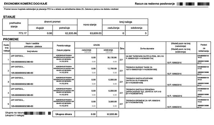 „Да подсетимо да сам ја сазнао да наводно нисам платио рачун када ми је стигла СМС порука из банке, с обавештењем да ми је блокиран рачун. Нисам добио претходно никакво обавештење, нити из предузећа, нити од извршитеља. Само је стигло решење извршитеља да платим 34.000 динара и ја сам то урадио. Међутим, нешто ми није дало мира и када ми је сада стигао извод отворених ставки, видео сам да је тај рачун заправо био плаћен“, прича Лакић.