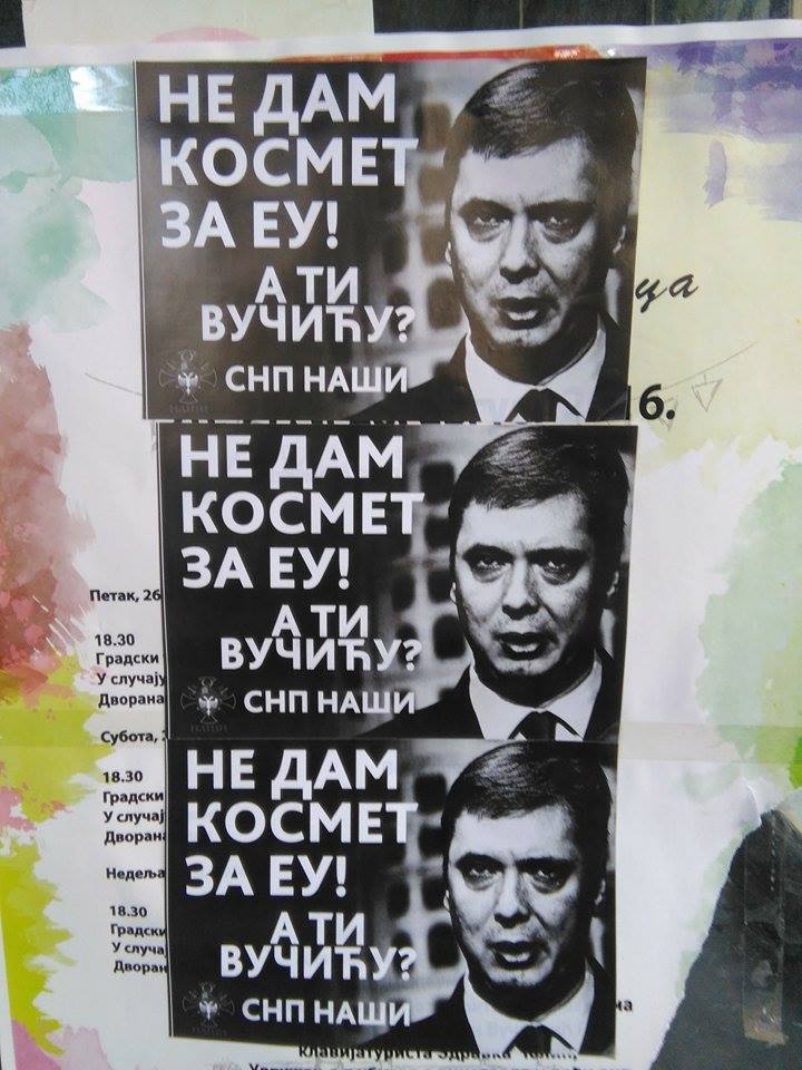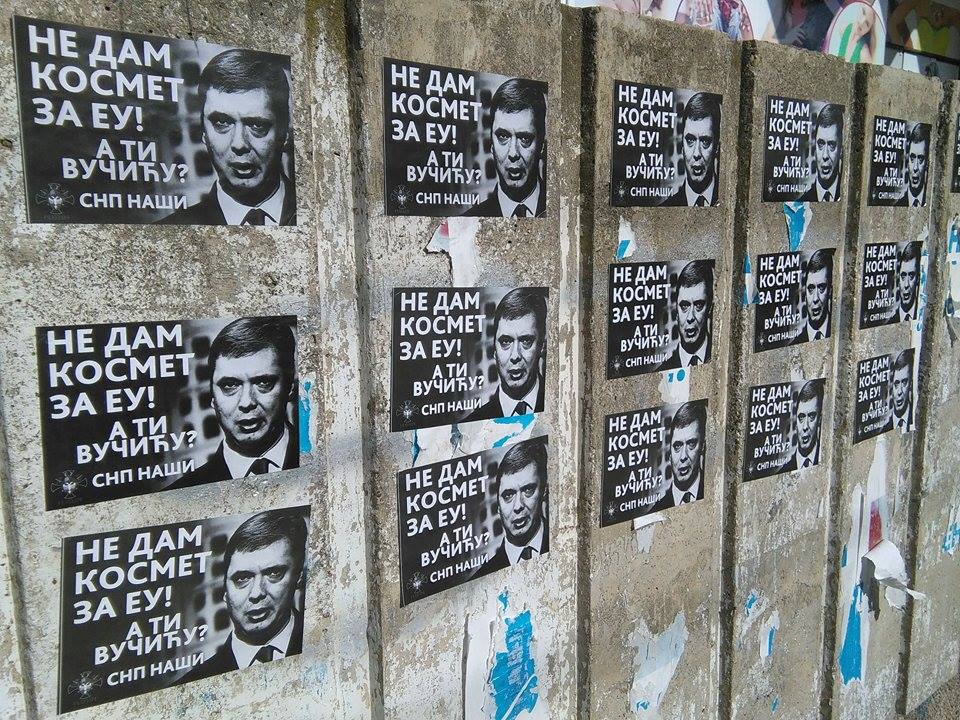 СНП „Наши“ започео је велику акцију у преко двадесет пет градова (Београд, Нови Сад, Крагујевац, Ниш, Аранђеловац, Краљево…) лепљења налепница против Александра Вучића и његове издајничке политике према Косову и Метохији.