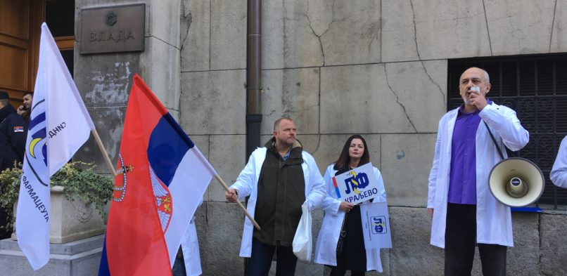 Published at 806 × 393 in Одржан протест Синдиката лекара и фармацеута Србије: Они су вам дали глас, они имају право да вас питају! (…) Имате ли неког школованог да изађе да причамо? Је л’ знате шта је дијалог? Је л’ знате да морате законе да дате на јавну расправу? Где је јавна расправа о законима који се тичу општег друштвеног значаја?