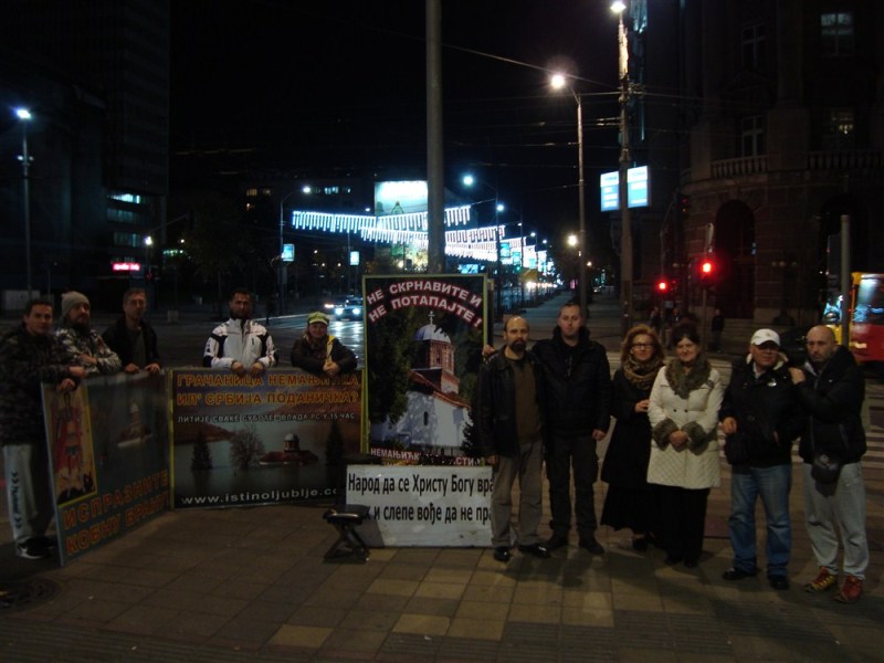 Ово мало верног народа што од марта стоји на Православним протестима испред Владе скида са себе одговорност за рушење Цркве и Отаџбине наше, које је сваким даном све дубље. Али каква нам је то утеха ако се не пробуде ближњи наши? то под јармом лажи, издаје и насиља клонуло стадо Христово! Не дајмо се немо упрезати у јарам безбожника под који подмукли домаћи непријатељ гура цео народ наш, браћо драга, у Христу Богу нашем…