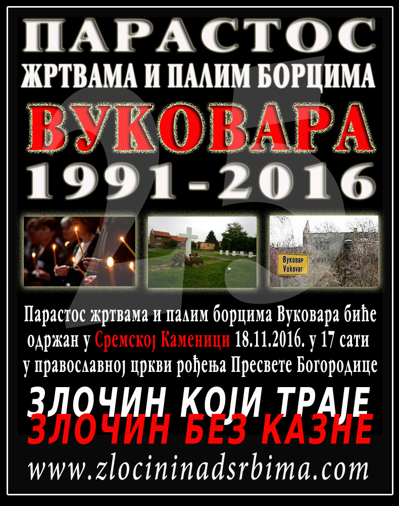 Вечерас се молитва разлила као лек који ране увек зацељује, па и највеће и најстрашније, у храму Рођења Пресвете Богородице у Сремској Каменици. Молитва је дотакла свако име, сваког борца, сваког човека, жену и дете, невино страдало од стране хрватске паравојске коју су предводили Томислав Мерчеп, Благо Задро, Миле Дедаковић, Марко Бабић, Анте Врањковић, Бранко Борковић и други злочинци над србским народом. Монструми су пре 25 година у Западном Срему и Источној Славонији убијали чак и децу млађу од дванаест година…