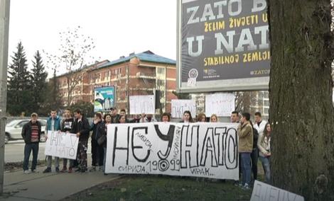Група Бањалучана протествовала је данас против НАТО пропаганде у РС и БиХ.