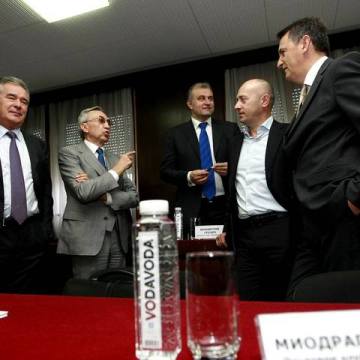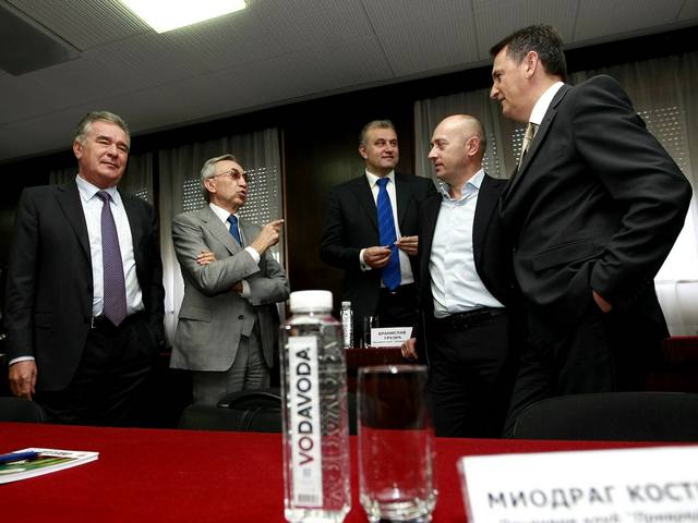 Biznismeni razgovaraju pred pocetak skupa pod nazivom „Socijalno partnerstvo za izlazak iz krize“, danas u Savezu samostalnih sindikata. Na slupu ucestvuju predstavnici Ministarstva rada, sindikalnih centrala, udruzzenja poslodavaca, privrednih komora i ekonomski struccnjaci.(BETAPHOTO/VLADIMIR GOGIC/TC)