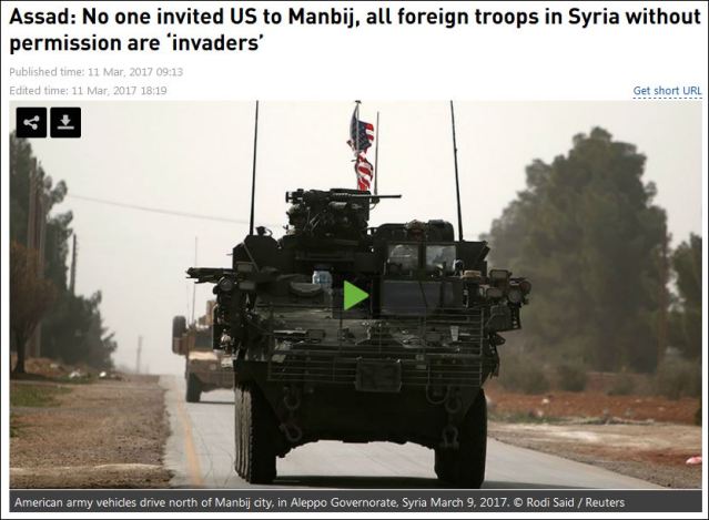 Any foreign forces, including those from the US, that enter Syria without invitation are invaders, Syrian President Bashar Assad told Chinese media in an interview, noting that no one had given the US troops currently in Manbij permission to be there.