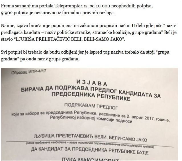 У 23:30 у РИК се вратио председнички кандидат да би му саопштили да постоји проблем са потписима…