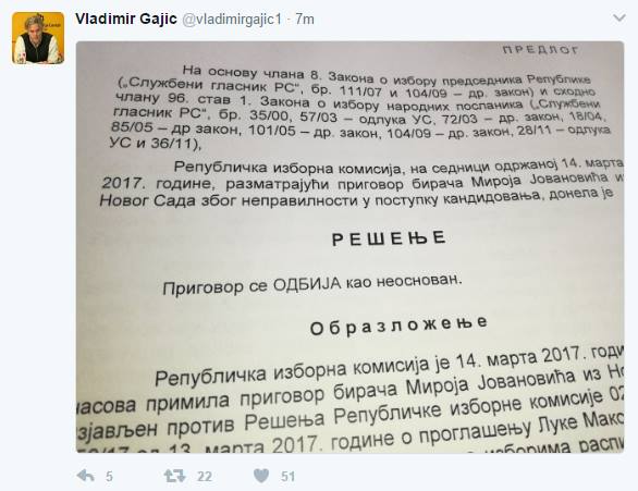 Published at 586 × 451 in ИЗБОРИ: Новосадски адвокат поднео приговор на кандидатуру Прелетачевића