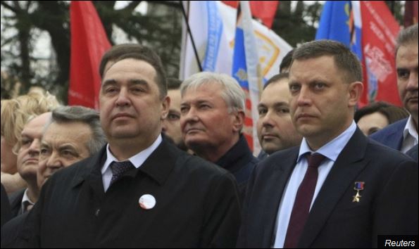 Лидери ЛНР-а Игор Плотницки (лево) и ДНР-а Александар Захарченко (десно) на прослави годишњице независности Крима