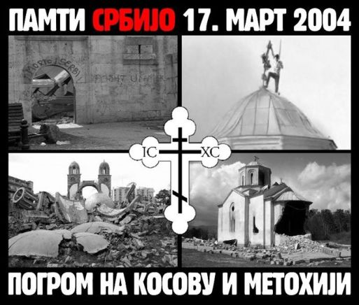 13 година је прошло од погрома на Косову и Метохији 17. марта 2004.године, када је око 51.000 шиптара у два дана и три ноћи убило 28 и протерало 4.012 Срба, етнички очистило шест градова и девет села, а два села, Слатина и Свињаре, потпуно избрисали. Порушено је, запаљено или тешко оштећено 935 српских објеката, као и 35 православних цркава и манастира, три ноћи и два дана су „горели векови“ сведоци постојања колевке србства… То је био наставак уништавања српске националне баштине крајем 20. и почетком 21. века на простору Косова и Метохије . И хронологија злочина над косметским Србима… нам је добро позната, као и то како је окупациони КФОР прикривао шиптарске злочине…