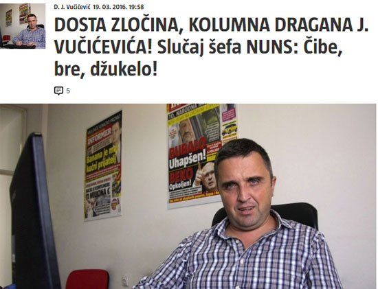 У суботу је српско новинарство дотакло дно. Глодур Информера, Драган Ј. Вучићевић, у колумни „Случај шефа НУНС: Чибе, бре, џукело!“ назвао је председника НУНС-а, „најстрашнијом пи*кетином“.