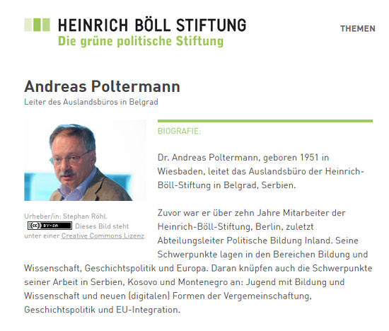 Поред Русије, Полтeрмана забрињава српско руководство и српска булеварска штампа, која „Немачку посматра као европског хегемона“ („Die serbische Führung und der Boulevard betrachtet Deutschland als europäischen Hegemon). Немачки аутор заборавља да тако мисле и многи у ЕУ. На крају немачки службеник фондације „Хајнрих Бел“ свој текст закључује податком да готово 80 одсто Срба јесу „против чланства Srbije у ЕУ, ако је услов да Србија мора да се одрекне Косова („Fast 80 Prozent sind gegen eine EU-Mitgliedschaft, wenn sie mit dem Verzicht auf Kosovo verbunden wären“). Извор: Dr. Andreas Poltermann, geboren 1951 in Wiesbaden, leitet das Auslandsbüro der Heinrich-Böll-Stiftung in Belgrad, Serbien.