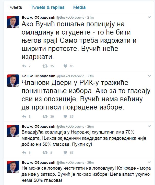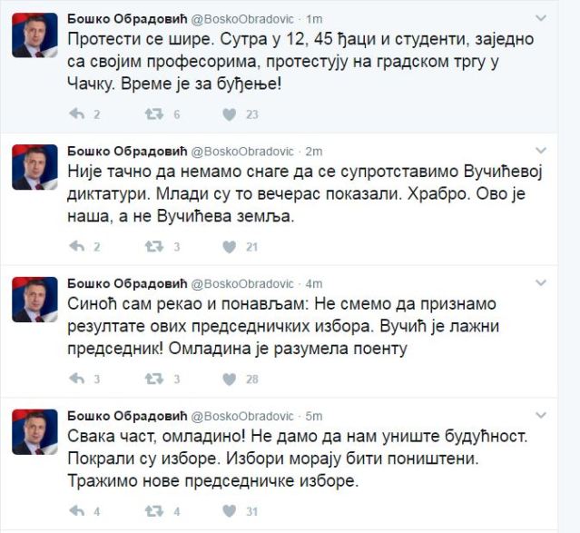 РЕАГОВАЊА ПРЕКО ТВИТЕРА: