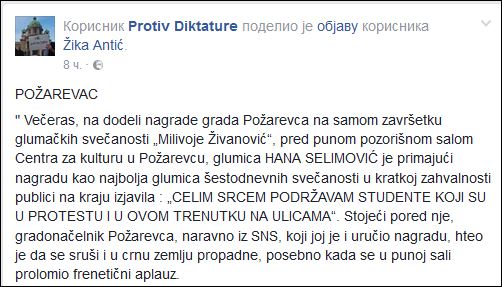 Видим веќ виѓено у Македонији. Неќе ни Вучиќ укрштених руку. Овако: Прво ќе убацити своје љјуде меѓу редове демонстраната да би узроковали нереде биќе то за дан два. Онда ќе активирати на хилјаде портала на интернету који ќе фантастичним спиновањем обрлатити народ да неќе се знат ко је у праву а ко није. Друго: Народним парама из буџета платит ќе светске лопуже у светским медијумима да га величају као демократу а нападати демонстранте као наовдно соросови плаќеници и непатриоти издајице. Ми македонци сада гледамо репризу филма који смо гледали и који се још даје код нас. Неќете успети да га свргнете с власти , гарантујем вам…
