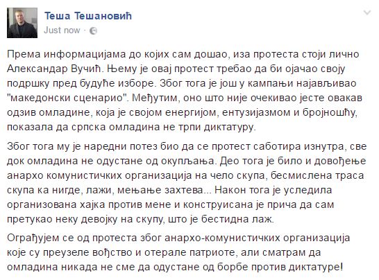 Published at 546 × 404 in ПЕТИ ДАН: Протести „Против диктатуре 2017“ – сутра са синдикатима полиције и војске и у Литији са Грачаничким стражарима (фото, видео)