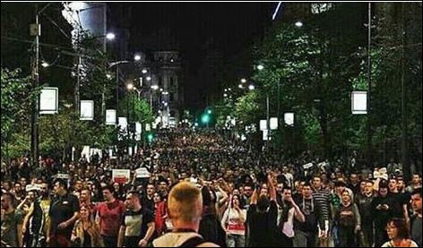 У атмосфери тријумфа с једне стране и апатије и разочарења с друге, у атмосфери поларизације коју је хипнотизер победник све време стварао, подигли су се само протести младих људи, углавном студената и ученика, којима се придружује и један број одраслих.