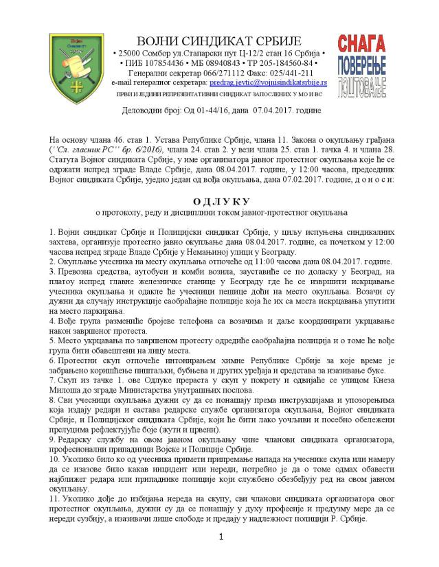 8.4.2017. ПРОТЕСТ – ШЕСТИ ДАН