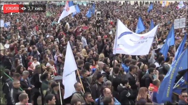 16.17 – Велика група студента на степеницама скупштине пева “ онесвести се“. Грађани се скупљају у великом броју и придружују студентима.