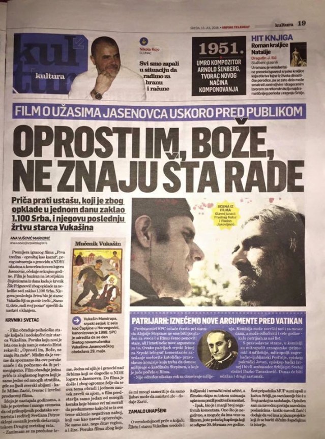 *Шта мислите зашто редитељи и продуценти у Србији нису раније дошли на идеју о екранизацији једне од најмрачнијих страница наше историје 20. вијека, погрома у Јасеновцу у Хрватској?