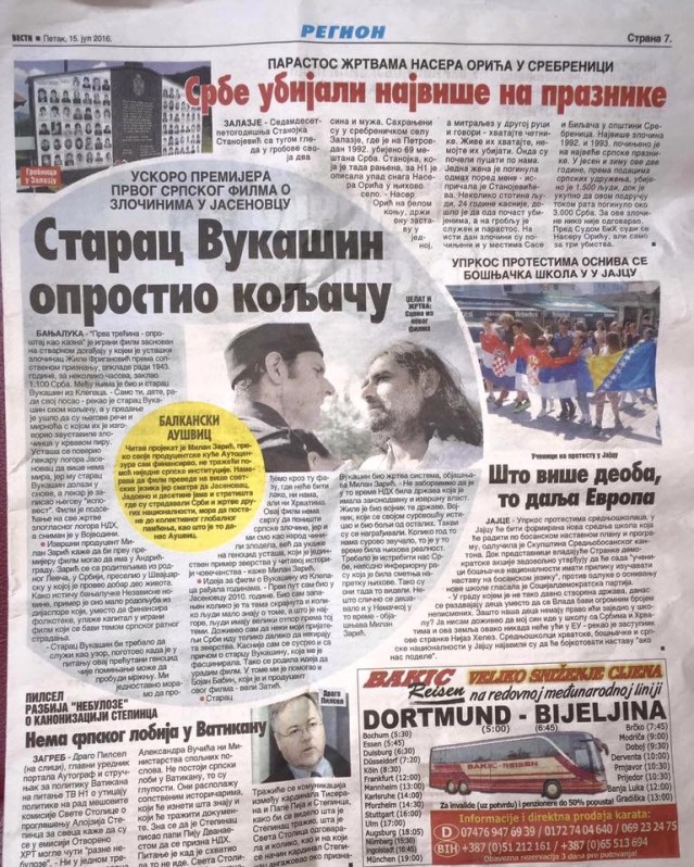 Захвалио бих се овом приликом и Вама и Српској телевизији на интересовању. Поред вас, филмом су се бавиле и “ТВ БН, РТРС”. Од новина “Курир” и “Прес” из Бања Луке, као и мноштво мањих алтернативних портала као “Србин Инфо”, “Хазардер” и многи други. Желим да напоменем да су “Вечерње Новости” још прошле године урадиле интервју и нису га објавиле. Пошто знам да је на челу тих новина господин Ратко Дмитровић, који је рођен у околини Јасеновца, и који се и сам често у медијима истицао говорећи о овој прећутаној теми, изненађен сам чињеницом да интервју није објављен. Извињавам се ако сам некога заборавио. Још једном хвала свима на подршци.
