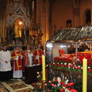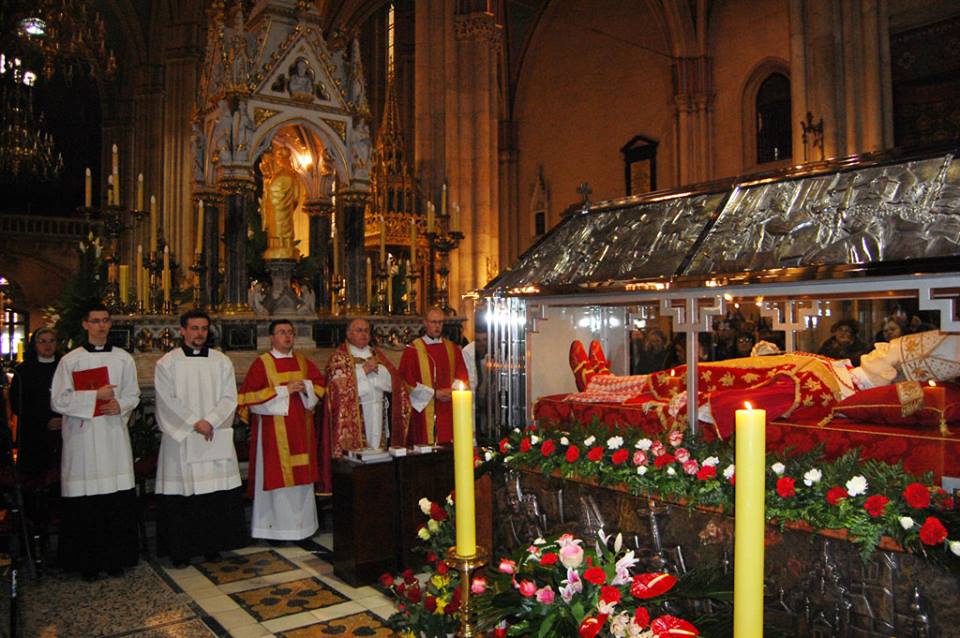 Саркофаг са воштаном фигуром Алојзија Степинца у загребачкој катедрали