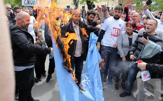 Присталице Демократског фронта на Цетињу запалили НАТО заставу